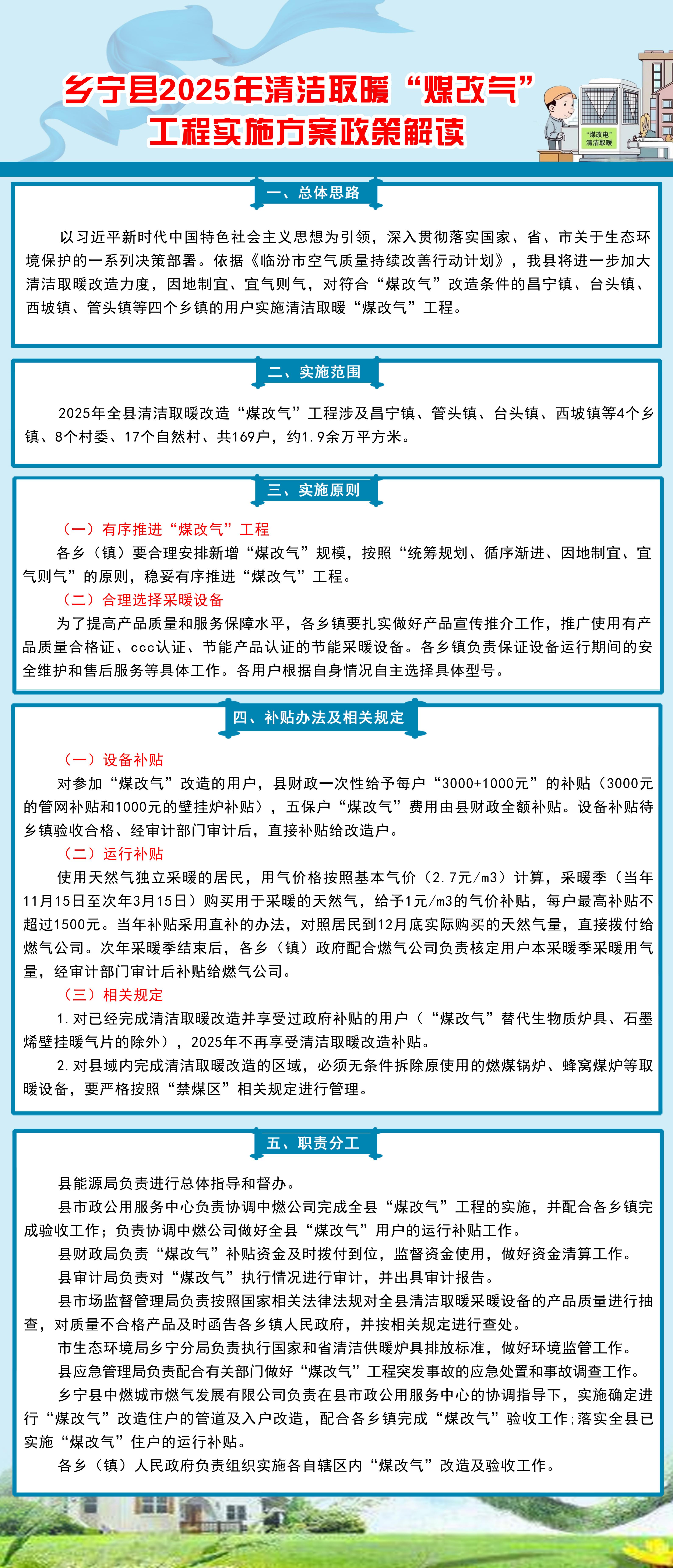 【图解】乡宁县人民政府办公室关于印发乡宁县2025年清洁取暖“煤改气”工程实施方案的通知